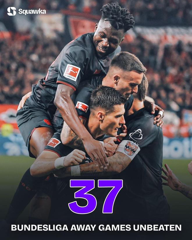 勒沃库森德甲客场37场不败,欧洲五大联赛历史第三