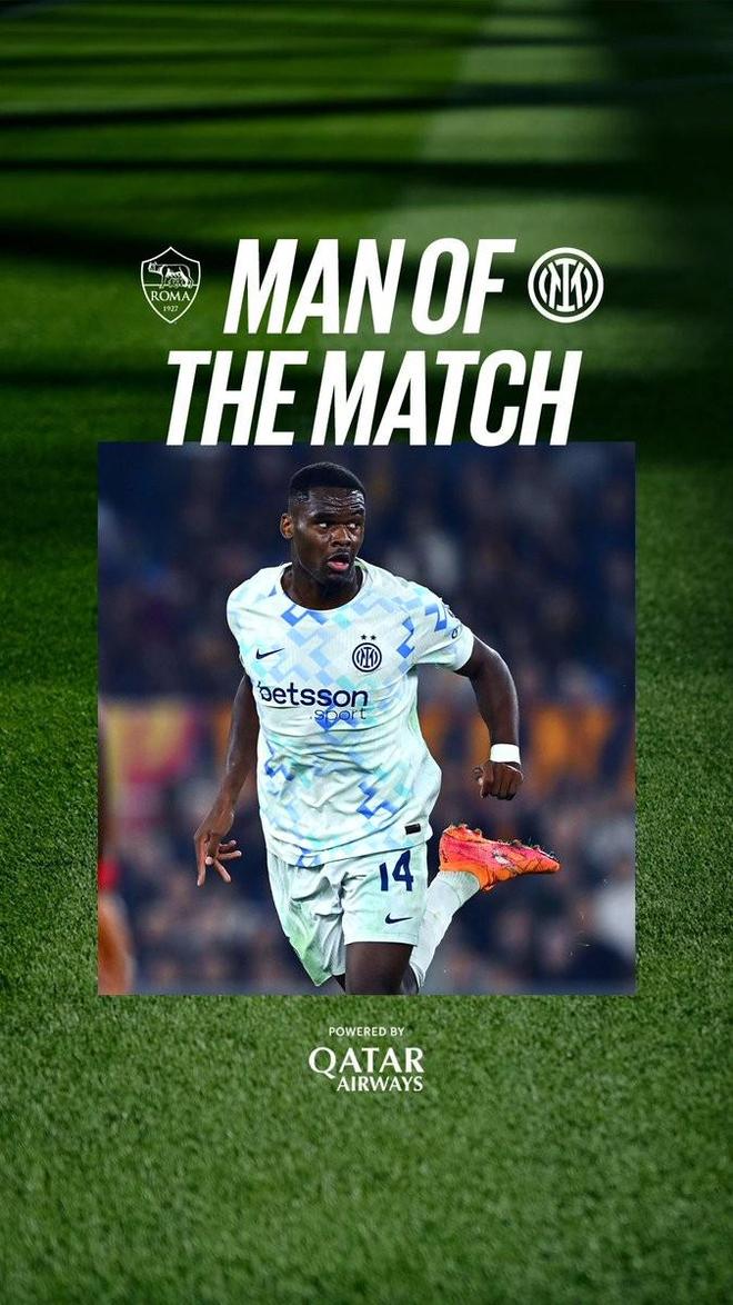 国米官方:博尼当选与罗马一役队内最佳球员