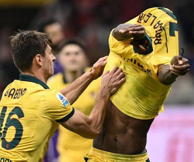第86分钟莱奥点球破门助米兰反超,之后他想脱衣庆祝,被