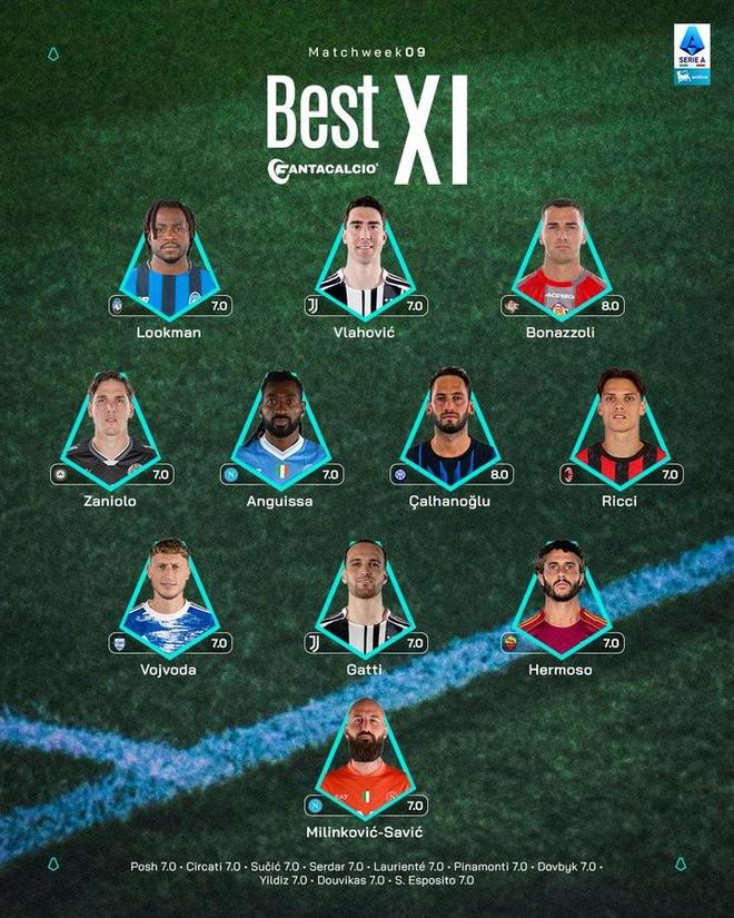 北京时间10月31日,意甲官方公布了联赛第10轮的最佳11人阵容,卢克曼、弗拉霍维奇、扎尼奥洛、恰尔汗奥卢、萨穆埃莱-里奇、费代里科-加蒂以及埃尔莫索入选。