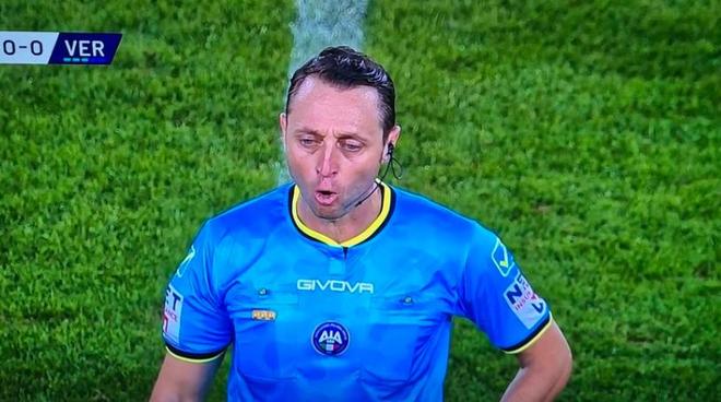 比赛临近尾声,主裁阿比索判罚维罗纳37号球员贝拉-科沙在本方禁区对莱切前锋卡马尔达犯规,在经过VAR回看后,阿比索向全场观众宣布判罚时出现了口误:“经VAR回放,乌迪内斯37号球员在禁区内并未犯规。最终判罚:点球取消。维罗纳,对不起!维罗纳,对不起!” 在搞错队伍后,阿比索也是向维罗纳替补席表达了自己的歉意。 |