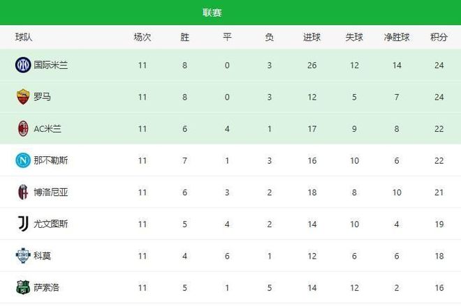 本赛季意甲11轮战罢,积分榜首的情景,让许多老意甲球迷有种恍如隔世的错觉。罗马与国际米兰同积24分并列第一,要知道,这是自2001/02那个群雄逐鹿的经典赛季之后,两队首次在意甲榜首位置上再度并驾齐驱。