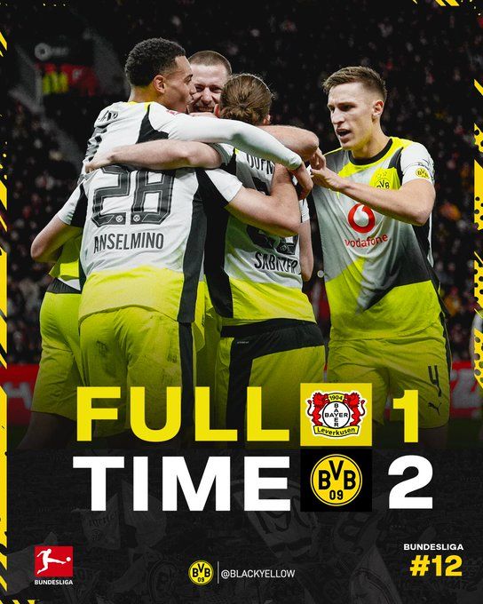 北京时间11月29日22:30,德甲联赛第12轮,拜仁慕尼黑主场迎战圣保利。上半场洪通吉6分钟首开记录+伤退,莱默尔后场被断,卡尔和比朔夫中柱,格雷罗扳平比分,迪亚斯倒地助攻,下半场凯恩中柱,迪亚斯和杰克逊补时连入2球反超。最终拜仁主场3-1逆转圣保利,拜仁联赛12轮不败+8分优势领跑。 德甲 勒沃库森 1-2 多特蒙德