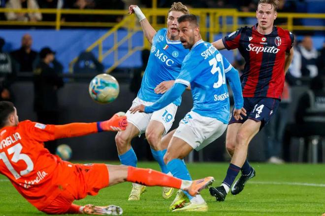 内雷斯火力全开 半决赛对AC米兰,赫伊伦对位打爆德温特,靠个人能力策动第一球、又小角度打入第二球。状态出色的丹麦中锋,自然成了博洛尼亚布防的重点。伊塔利亚诺选择用同样来自北欧的挪威中卫海根与之对位,后者的表现显然比德温特出色,但仍然是不够的。海根尝试用身体对抗遏制赫伊伦,结果上半场就吃到黄牌,博洛尼亚门前也数次风声鹤唳。那不勒斯从开场就占据局面主动,埃尔马斯开场不久就与进球擦肩而过,内雷斯则在第36分钟从中场送出精妙直塞,插上领球的斯皮纳佐拉射门,被拉瓦利亚封出。 眼见队友没法破门,内雷斯决定自己来。第39分钟,巴西人接到界外球,横向盘带稍作调整,随后在禁区外用左脚划出精妙的弧线,皮球几乎贴着立柱飞入球网,角度相当完美。对于那不勒斯球迷来说,这是个反向的因西涅式弧线球(前那不勒斯队长是右脚踢左路),看台上的皮耶罗则或许会想到自己的球员时代。此前,内雷斯的进球大多来自于赫伊伦之间的配合,两人也构成了目前意大利赛场上状态最好、配合最默契的双子组合之一,这次则完全是个人秀。