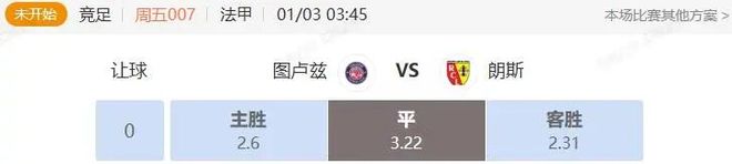 2.专家:何志伟 竞足 周五007 法甲 图卢兹VS朗斯 开赛时间:2026-01-03 03:45:00