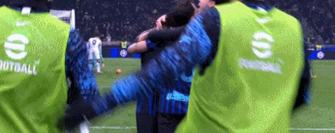 下半时开打后国米又靠一次角球机会完成了2-0的成就。恰尔汗奥卢开出来后,劳塔罗攻门,敌人门将无计可施就此国米扩大比分优势!看看劳塔罗庆祝及国米队友们拥抱就知道了,他们对这比赛很是重视,没人不知道,博洛尼亚就是他们苦主。
