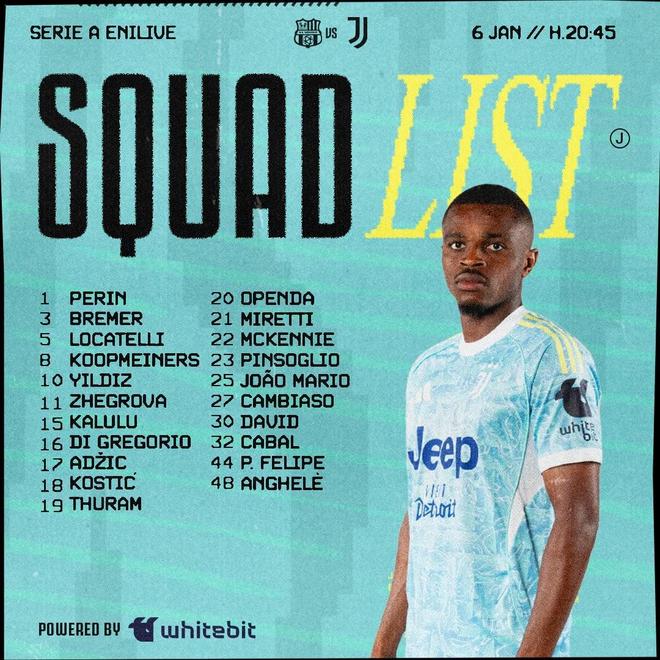 守门员:佩林、迪格雷戈里奥、平索利奥 后卫:布雷默、卡卢卢、若昂-马里奥、安德烈亚-坎比亚索、卡瓦尔、佩德罗-费利佩 中场:洛卡特利、库普梅纳斯、阿季奇、科斯蒂奇、凯夫伦-图拉姆、米雷蒂、麦肯尼 前锋:伊尔迪兹、热格罗瓦、奥蓬达、乔纳森-戴维、洛伦佐-安格莱 |