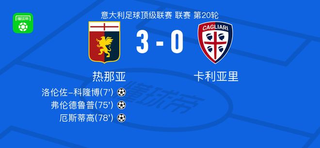 热那亚30大胜卡利亚里,厄斯蒂高、弗伦德鲁普破门