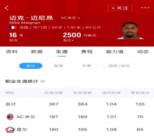 体育播报01月25日宣 记者罗马诺消息,米兰已经和迈尼昂达成口头协议,续约至2031年! 正式的手续还在推进,但协议已经达成,迈尼昂原有合同在2026年夏天就将到期。米兰踏出了重大一步,续约队内关键球员迈尼昂。 迈尼昂现年30岁,球员现德转估值2500万欧,本赛季,他代表米兰各赛事出战24场,做到11次零封。
