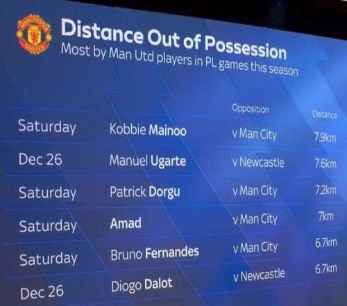但曼联没有动摇,处于不利地位,但球员没有放弃。数据显示,在鲁本·阿莫林麾下被弃用的20岁青训新帝星科比·梅诺,在卡里克执教后对阵曼城和阿森纳的两场比赛,跑动距离冠绝全队。曼联官方宣布,对阿森纳,梅诺跑了11.3公里;对曼城则达到12公里,其中7.9公里发生在皮球不在本队控制的情况下。