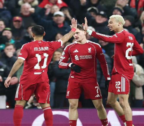 易边再战利物浦的进攻势头完全不减,持续压迫造险,战术任意球,索博连线萨拉赫远射得手,接着又是教科书级别的反击,埃基蒂克进球,全队多点开花彻底打花比赛,他们仍旧没有收手,麦卡建功锦上添花,胜券在握,他们作出大规模阵容调整,最终6比0酣畅淋漓的大胜。