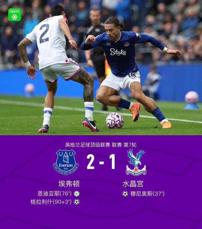 北京时间10月5日,英格兰足球超级联赛第7轮展开角逐,埃弗顿坐镇主场迎战水晶宫。比赛中,水晶宫率先打破僵局,伊斯梅拉-萨尔送出助攻,穆尼奥斯成功破门,帮助客队取得领先。随后,恩迪亚耶主罚点球扳平比分。比赛进入补时阶段,格拉利什挺身而出,打入关键进球,助力球队实现逆转。最终,埃弗顿以2比1战胜水晶宫,收获宝贵三分。 关键事件 第38分钟,伊斯梅拉-萨尔反击助攻,穆尼奥斯跟进推射破门,水晶宫1-0! 第76分钟,伊罗格布南造点,恩迪亚耶操刀命中,埃弗顿1-1! 第90+2分钟,格拉利什将对方的解围挡入网窝,埃弗顿2-1反超比分!