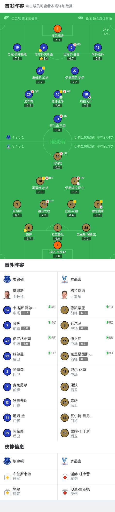 埃弗顿21逆转送水晶宫赛季首败,格拉利什补时绝杀