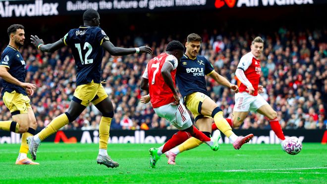 北京时间10月4日晚间,英超第7轮迎来伦敦德比,总身价13.3亿的阿森纳坐镇主场迎战西汉姆联。 俗话说,换帅如换刀,开局1胜4负深陷保级区后,西汉姆联管理层忍无可忍,解雇了波特,英超老熟人努诺走马上任后的首场比赛,西汉姆联客场战平埃弗顿,止住颓势。 周中的欧冠联赛,对人员进行部分轮换的阿森纳2-0轻松战胜奥林匹亚科斯,欧冠赛场2连胜0丢球,球队也取得了各项赛事的3连胜。 值得注意的是,最近两个赛季阿森纳在联赛中主场对阵西汉姆联,全部失利,反倒是客场都可以取胜。 第12分钟,厄德高送出直塞,枪手生涯200场里程碑的萨卡传中,西汉姆联门前一片混乱。面对绝佳机会,埃泽居然将球踢高,自己都觉得不可思议。 第23分钟,阿森纳率先进球,接到赖斯的妙传,萨卡突入禁区冷静破门,但还没来得及庆祝,边裁就已经举旗,萨卡越位在先,进球无效。 6分钟后,阿森纳遇到了大麻烦,此前对抗受伤的厄德高还是无法完全发力,坐在草皮上摊开双手相当无奈,被苏维门迪换下。 这是厄德高连续3个英超主场因伤被换下场,要知道,厄德高刚刚伤愈复出不久,接下来的国际比赛日,厄德高对于挪威的重要性无需多言。 第38分钟,萨卡策动进攻,苏维门迪的直塞恰到好处,埃泽的怒射被扑出,赖斯补射,枪手取得领先。 面对旧主破门,进球后的赖斯并没有任何庆祝,这也是赖斯本赛季的首个进球。 上半场补时阶段,枪手距离两球领先就差一点,卡拉菲奥里的远射击中门柱,弹在阿雷奥拉的后背上,皮球在门线前旋转,后卫大脚解围。 整个上半场,阿森纳完成15次射门,西汉姆联只有2次,枪手全面占优。 第63分钟,来自苏维门迪的妙传,廷贝尔被迪乌夫放倒在禁区内,裁判判罚点球。 萨卡操刀主罚,稳稳命中,加上周中的欧冠,连场破门,萨卡的200场里程碑相当完美。 第78分钟,赖斯也坐在地上,无法坚持被换下场。最终,在这场伦敦德比中,总身价13.3亿的阿森纳兵不血刃,2-0战胜西汉姆联,迎来各项赛事的4连胜。枪手先赛的情况下积分来到16分,暂时超越利物浦登顶。 |