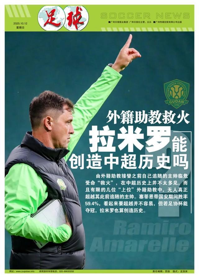 撰稿/寒冰10月7日,北京国安官宣西班牙助教拉米罗·阿马雷接替塞蒂恩担任代理主教练,引发了媒体和球迷热议。由外籍助教接替之前自己追随的主帅临危受命“救火”,这在中超历史上并不太多见,而且有限的几位“上位”外籍助教中,无人真正超越其此前追随的主帅。此番拉米罗上任,今年还有4场中超、4场亚冠2联赛小组赛和1场足协杯决赛要打。塞蒂恩带国安期间胜率59.4%,看起来要超越并不容易,但若足协杯能夺冠,拉米罗也算创造历史。
