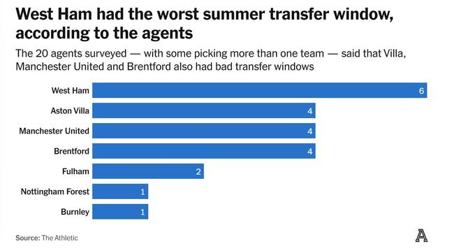 另一位经纪人补充道:“他们简直是一团糟,他们花了 1800 万英镑签下莱斯特城的门将赫尔曼森——太奇怪了。他们还花了 3500 万英镑从尼斯签下托迪博(在西汉姆联保住英超资格后,强制买断条款被激活),他们又花了 4000 万英镑从南安普顿签下马特乌斯-费尔南德斯……他们似乎根本不知道自己在做什么。”