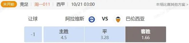 竞足 周一011 西甲 阿拉维斯VS巴伦西亚