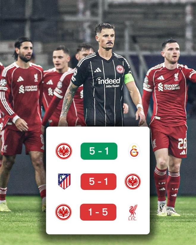欧冠联赛阶段第三轮,法兰克福主场1-5不敌利物浦,至此,法兰克福本赛季欧冠三场比赛的比分都是5-1。