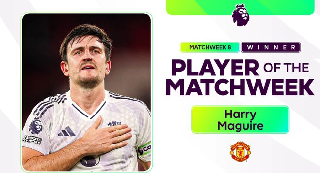 双红会头球制胜!官方:马奎尔当选英超第8轮最佳球员