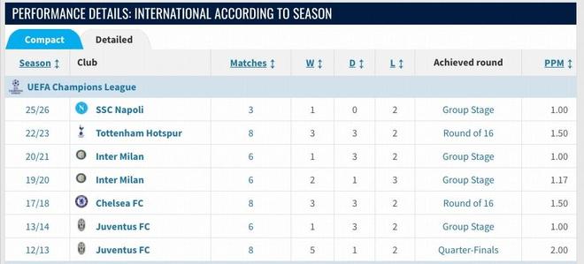 执教那不勒斯以来,孔蒂共计率队参加3场欧冠联赛,取得1胜2负的战绩。