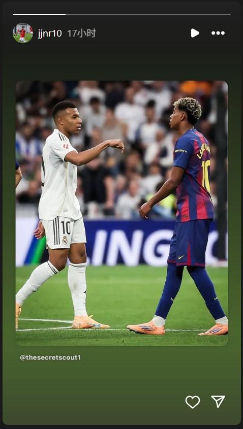 曼联新星JJ加布里埃尔社媒转发贴文,庆祝皇马赢下国家德比