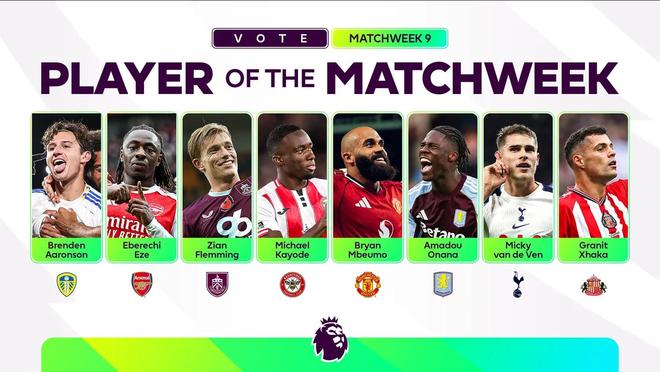 北京时间10月28日,英超官方公布了第9轮比赛日的最佳球员候选,其中埃泽、姆伯莫范德芬、扎卡在列。