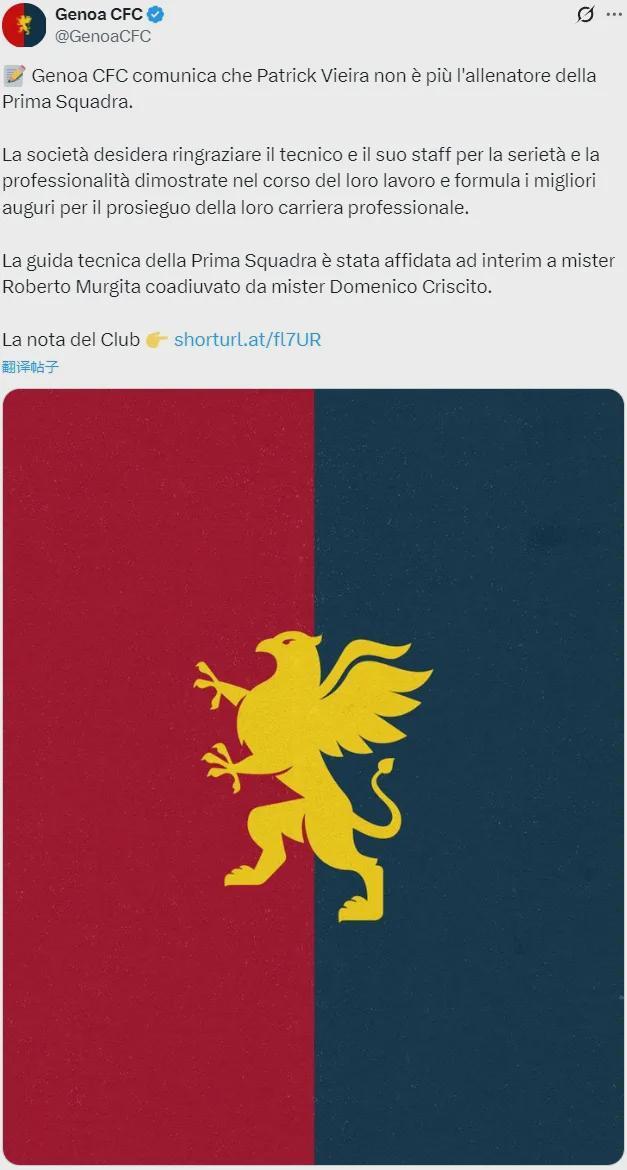 本赛季热那亚在9场意甲比赛中未尝一胜,只取得了3平6负的战绩。