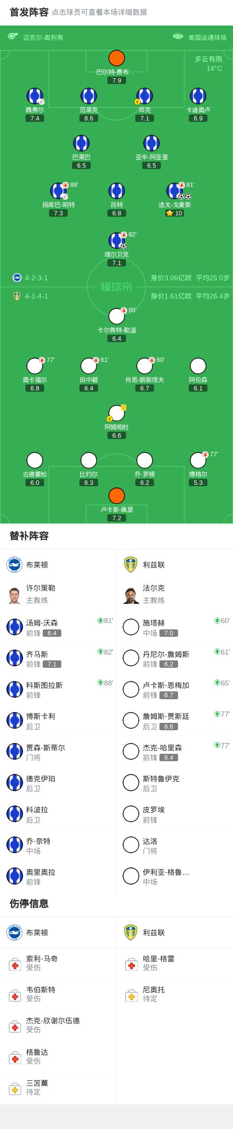 布莱顿30利兹联,维尔贝克破门,迭戈戈麦斯梅开二度