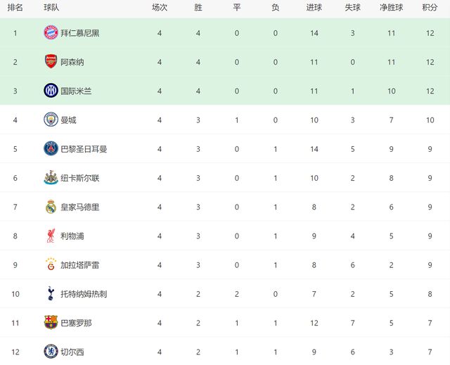 截至目前,欧冠前4轮已经全部踢完,英超整体表现非常强势。在积分榜上,阿森纳、曼城、纽卡斯尔和利物浦4支球队位居前八,此外热刺排名第10,切尔西位居第12,这2队和前八球队的差距并不大。本赛季,英超6队出战欧冠,随时可能全部出线。 现在看来,英超强队在欧冠已经形成集团优势。不过他们未必就能拿到冠军,因为有一支强队,表现也很强势,那就是拜仁。本轮在客场战胜大巴黎之后,拜仁本赛季各项赛事至今全胜,孔帕尼的球队,迎来史诗级的开局,他们也被视为本赛季欧冠最大热门。本赛季欧冠的形势,随时也演变成英超6强围剿拜仁的局面。巧合的是,下一轮比赛,拜仁就将做客对阵阿森纳,如果能够在客场战胜对手,这个赛季的拜仁,恐怕就没有球队挡得住了! |