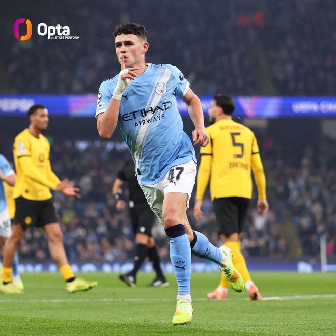 此役主场对阵多特蒙德,福登在比赛第22分钟禁区外兜射破门。 据统计,自2023-24赛季开始以来,福登在各项赛事中为曼城打入了10粒禁区外远射进球,是同期英超俱乐部球员中最多。 |