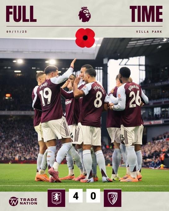 【英超】维拉4-0大胜,樱桃苦吞连败 英超 11-10 00:25 英超第11轮,阿斯顿维拉主场迎战伯恩茅斯。第28分钟,布恩迪亚禁区前沿任意球直接破门。第40分钟,阿马杜·奥纳纳远射扩大比分。第64分钟,罗杰斯手球送点,埃米利亚诺·马丁内斯神勇扑出塞梅尼奥点球。第77分钟,巴克利前点接迪涅右路角球,头球后蹭破门。第82分钟,马伦禁区前沿低射折射入网。维拉4比0大胜,18分暂列第7。樱桃军团遭遇自5月以来首次联赛连败,5月先输维拉后负曼城,11月先输蓝月再负维拉。