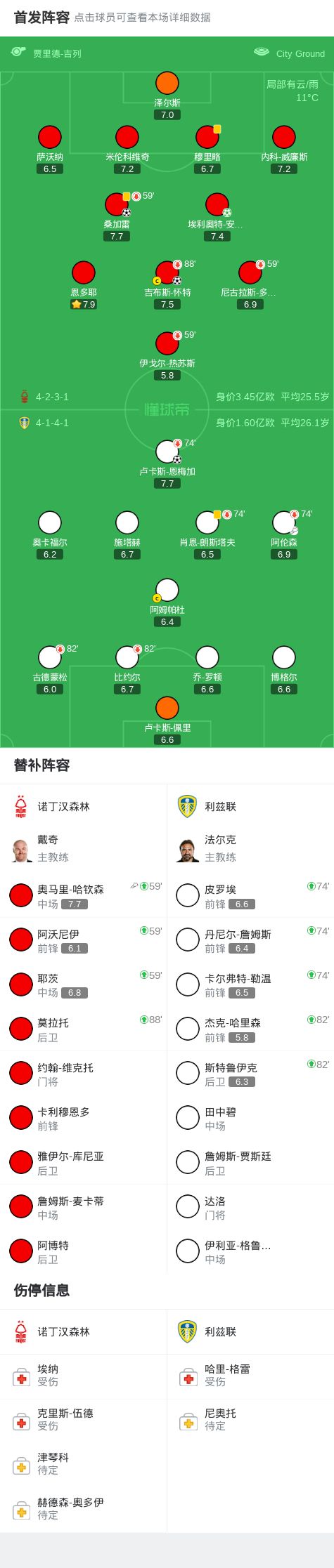 诺丁汉森林31逆转利兹联终结连续9轮不胜,吉布斯怀特建功
