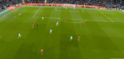 第28分钟,努内斯右路横传,哈兰德头球吊射破门,1比0!