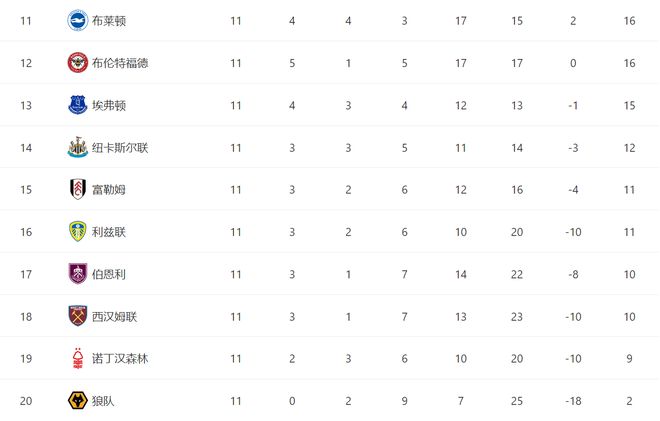 上半场,恩梅查禁区内低射破门,帮助利兹联1-0领先,随后不久,桑加雷补射破门,帮助诺丁汉森林1-1快速扳平。下半场,吉布斯-怀特、安德森各进一球,帮助诺丁汉森林3-1完成逆转。 布伦特福德VS纽卡斯尔 上半场,巴恩斯禁区内左脚施射破门,帮助纽卡斯尔1-0先下一城,球队却在下半场突然崩盘,第56分钟、第78分钟、第95分钟连丢3球,同时伯恩禁区内放倒形成单刀的蒂亚戈,也被红牌罚下,最终1-3遭到布伦特福德的逆转。 最新积分榜如下: