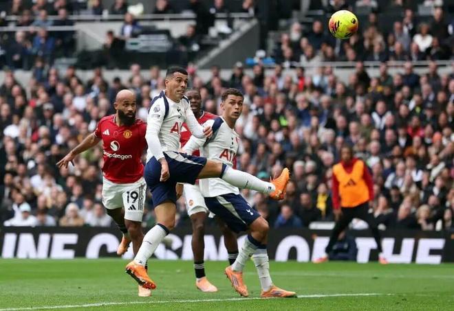 TNT Sports在直播时列出数据,前30分钟里曼联在热刺禁区仅有一次触球。热刺则比曼联多出100%,也就是说,整整两次。