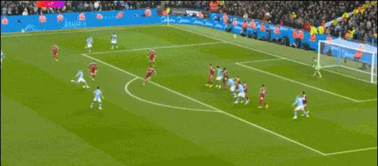 上半场伤停补时阶段,尼科-冈萨雷斯远射,皮球击中范戴克折射入网,曼城半场2球领先。