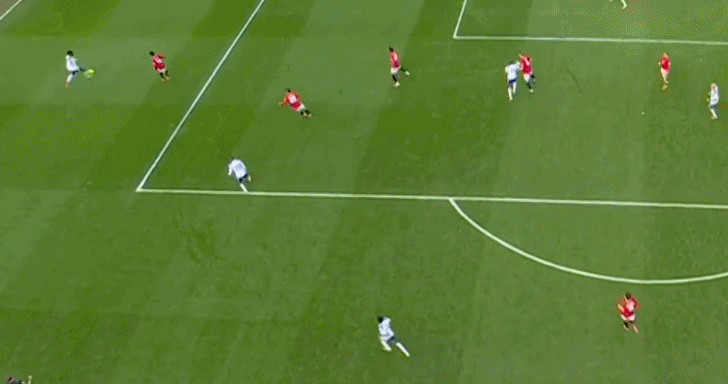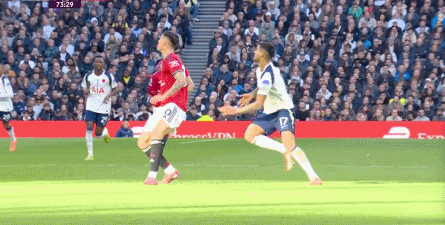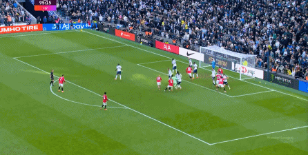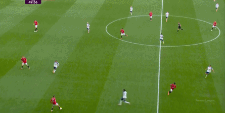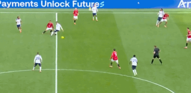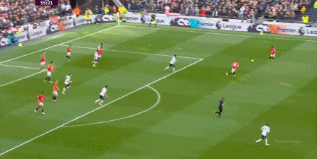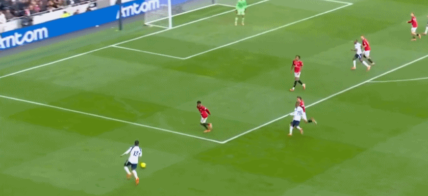 所以你可以看到,当热刺打得比0-0的时候更简单一些,其实就是将压力直接甩到曼联后卫的身上的时候,曼联就难免要出问题。 哪怕当时的曼联在中后场已经换了3个人,看起来已经补充好了体能。 但这就是我们不厌其烦,一直在说的观点:无论你在防守端如何调整和换人,曼联的防守问题几乎是无法解决的,因为你的球员的实力就是如此。 只要对手压上来,持续地制造防守压力,曼联的防守端就会出乱子,这场比赛的曼联甚至因此折损了马奎尔。 而这意味着什么?意味着未来几场比赛,约罗可能会重回首发了。 老将和年轻球员各有问题,这一点完全可以得到理解,毕竟你用他们,就要在战术思考中考虑到他们现阶段的短板。 但作为曼联后卫线最强一环,你也很难苛责德里赫特了,因为比赛临近结束的他已经几乎耗尽,不仅要看到他需要面对替补上来的特尔,还要看到他在换人之前作为边中卫的表现: