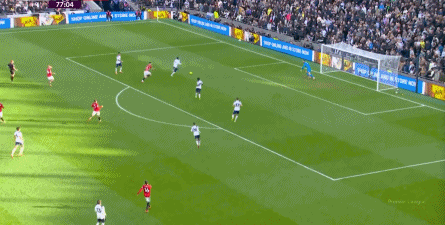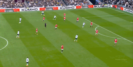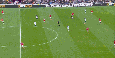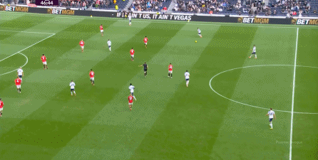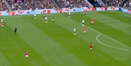 这个时候,当你再回想两次传中时的约罗的站位问题的时候,是不是就显得尤为重要了? 足球比赛就是这样的:你在每一个区域,每一个位置上的每一个球员,所做的每一个动作的质量高低,都可能会在90分钟的时间长度和对手输出的强度变化下,成为下一个关键节点的导火索。 所谓的教练们关注细节,其实就是在关注这些细枝末节的地方。 但是,作为一支无论教练怎么看菜下饭,就像今天客场面对热刺,开局就摆出五后卫,随后在比赛当中或主动,或被动地换下两个后卫的球队,却能在比赛最后10分钟里连丢两球,你觉得这是一支可以实质上改善防守质量的球队吗? 在我们看来,这是不能的,你只能带着这个11场丢18球的防守端进行比赛,所以真正能解决问题的,还是在向前的方向上。 这个时候,阿莫林在开局的进攻端布置就显得尤为重要了。 库尼亚代打中锋,在赛季初的单场比赛有效,是因为当时首发的左边锋是芒特,可以用逆足提供一条斜向的线路,从而和另一侧的逆足进攻端互相联系。 然而,今天库尼亚代打中锋,姆贝乌莫顺足打在左侧,他自己可以凭借身体和速度稍有发挥,可是库尼亚呢?