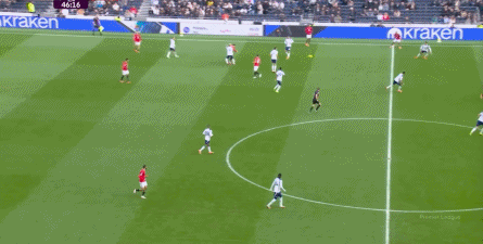 有进球,而且上半场带着1-0的比分进入更衣室,我们确实就没太多能说的了,毕竟我们也证明不了理论上的最高反制布置,是否也能带着领先的比分进入中场休息的时段。 但到了下半场,随着热刺输出的压力越来越大: