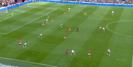这就是年轻球员在大哥身边成长的过程,但对于曼联来说,你有反制能力,你才能打疼、打怕对手,对手向前投入进攻就会出现犹豫,这就是一个帮助防守端解压的方法。 而且,在11轮比赛之后,曼联恰恰愈发呈现出重视转换的样子,因为在曼联11场进19球,射门数、射正数都位居前列,是联赛进球第四多的球队的情况下,曼联是本赛季英超第一支丢失球权次数超过1500次的球队。 以1510次丢失球权,在这项数据上排名榜首。 不仅如此,11轮比赛过后,曼联的传球数表现尚可,以4784次传球排名联赛第7,但传球成功率只有79%,排名联赛第12。 这是因为曼联的长传次数很多,以644次排名联赛第2。 所以当你将这些数据汇总起来一起关注,得出的结论就非常清晰了:在阿莫林的治下,曼联是一支清晰的转换型球队。 用大家更容易理解的方法来说,那就是你可以说曼联没防守,但确实是一支很会反击的球队。 这再次指向了阿莫林的战术思想,确实没有滕哈赫那般激进,因为后者绝对无法容忍球权不在自己的脚下,但对于阿莫林来说,这一点倒没什么。 拉门斯的大脚一脚接一脚,球队已经相当习惯了。 但是,在这种战术思想和现在的表现当中,曼联的问题也会因此加剧,那就是由于丢失球权次数太多,所以曼联在比赛中和对手之间形成的回合数太多,这一点是需要解决的,因为解决了回合数,球队,尤其是中后场的消耗就可以得到控制。 防守质量,就有机会因此稍有提高。 一个很清晰的解决方法就是提高自己的控球率,但由于曼联自己的技术能力有限,提高了控球率不仅会导致打转换的机会变少,还可能会出现抓不住打转换的机会的问题,更不用说可能会因此大幅暴露后场的空间。 这显然不是阿莫林的战术思路,但在相对保守和中庸的流派当中,依然有办法,那就是控制住比赛的节奏: 我想快的时候,就能快起来,而我不想快的时候,也可以让比赛慢下来。 当然了,这一点也在很大程度上取决于曼联的中后场的防守意识,能否在7人,甚至6人防守当中,抵住对手最有威胁的第一波进攻,从而给中前场球员回来落位的时间。 但还是那句话,曼联在这一点上是不能指望的,所以关键在于其他环节。 虽然曼联在进攻端的布置在理论上稍有问题,库尼亚和阿玛德-迪亚洛在各自位置上的表现不足很清晰,导致上半场的反制能力没能拔到理论上的最高值,但曼联还是先进一球,而且线路上恰好是右路的阿玛德-迪亚洛传给左路的姆贝乌莫: