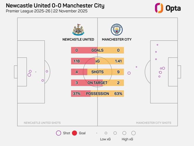 纽卡和曼城上半场浪费7次绝佳机会,创英超1011赛季以来纪录