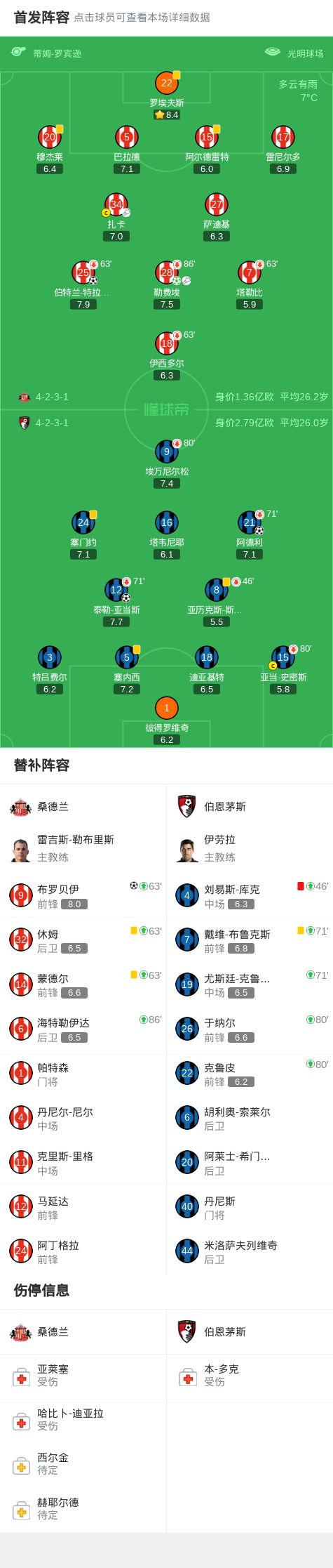 桑德兰32逆转伯恩茅斯,布罗贝伊制胜,泰勒亚当斯超远吊射