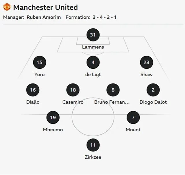 与上轮相比,鲁本·阿莫林对主力阵容进行两处调整,芒特和迪奥古·达洛马兹拉维和帕特里克·多古取代成为先发。阿莫林解释道:「关键在于训练,他俩的训练非常出色。此外还有战术因素,芒特踢得很聪明,能帮助我们更好地掌握球权,他斗志顽强,还能进球。」