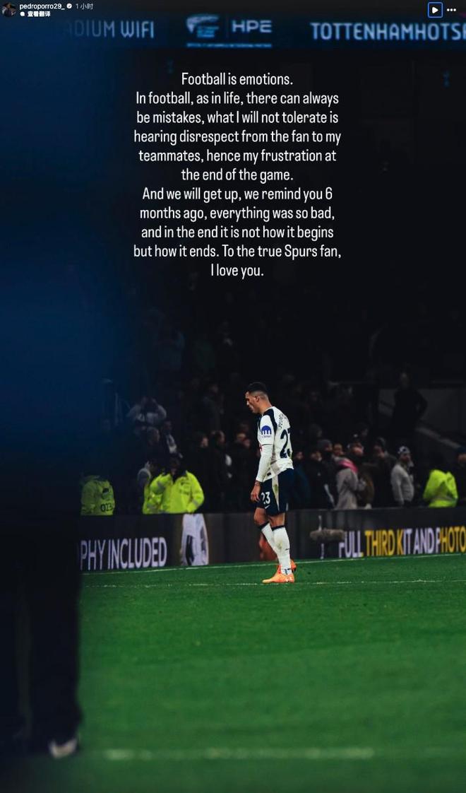 英超第13轮,热刺主场1-2不敌富勒姆,遭遇各项赛事三连败。今日,热刺后卫波罗更新社交媒体发表感言。