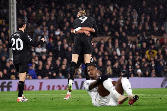 但好歹是赢了,也算有惊无险。曼城3分到手,也保留了对领头羊阿森纳的压力。 于是,曼城稍作休整便奔赴克拉文农场,准备笑纳富勒姆的大礼。这可不是空口白话,此战开打之前,曼城对富勒姆已经各项赛事18连胜。即便是单论英超,曼城也是15连胜。 果然,这场比赛的上半场完全在曼城的掌控之中,哈兰德不费吹灰之力便打进了个人英超第100粒进球,而他仅仅用了111场比赛,史上最快。