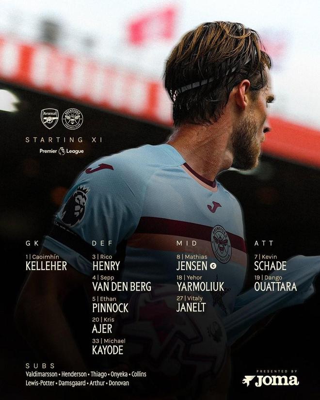 阿森纳vs布伦特福德:马杜埃凯、厄德高、本怀特首发