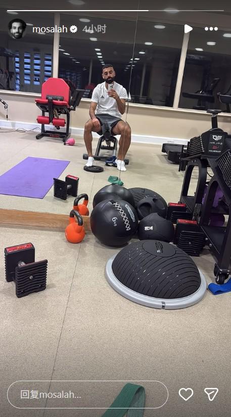 北京时间12月12日,利物浦球星萨拉赫更新了社交媒体动态,他晒出了一张自己在健身房独自训练的照片。