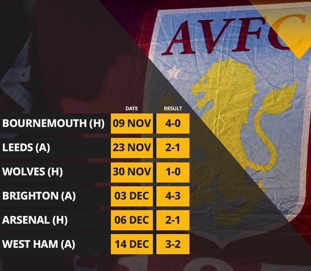 英超第17轮,维拉将主场对阵曼联,维拉近6场英超全胜,他们上一次取得顶级联赛7连胜是在1990年。