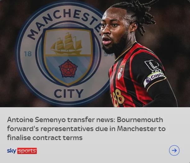罗马诺发推:曼城将再次和伯恩茅斯就塞梅约的转会展开谈判,以争取在本周敲定这笔交易。 曼城已经和塞梅约就个人条款达成口头协议,他们依然有信心签下这名边锋,尽管利物浦上周再次联系了塞梅约……