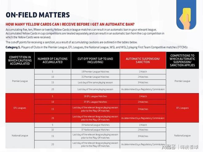 根据英超官网公布的规则,第19轮之前,得到5张黄牌的球员,需要自动停赛一场,第32轮之前,得到10张黄牌的球员,需要自动停赛两场,整个赛季中,得到15张黄牌的球员,需要自动停赛三场,至于得到20张黄牌以上的球员,则要通过相关的纪律委员会做出相关的处罚。而且,累积黄牌停赛,只能在英超联赛中执行,不能在国内杯赛接受处罚。 显而易见,第19轮是一个关键的节点,只要顺利度过这个节点,累积5张黄牌就不需要停赛,直到10张才要处罚。同时,英超官网也列出目前身背4张黄牌的球员名单,其中不乏有传统六强的身影,需要留意。 切尔西只有一名球员上榜,那就是熟悉的凯塞多,此前凯塞多因为红牌的关系,已经连续缺席三场比赛,导致球队1平1负,是近期成绩不佳的因素之一,没有凯塞多的切尔西,似乎是另外一支球队。红黄牌的问题,必须要多加留意,几周后的联赛杯半决赛首回合,凯塞多确定停赛无缘面对阿森纳,明年世界杯小组赛首轮面对科特迪瓦,预计也要停赛。而上赛季第33轮,凯塞多得到第10张黄牌,幸运地躲过了处罚,不知道这一次,还会不会那么好运呢?